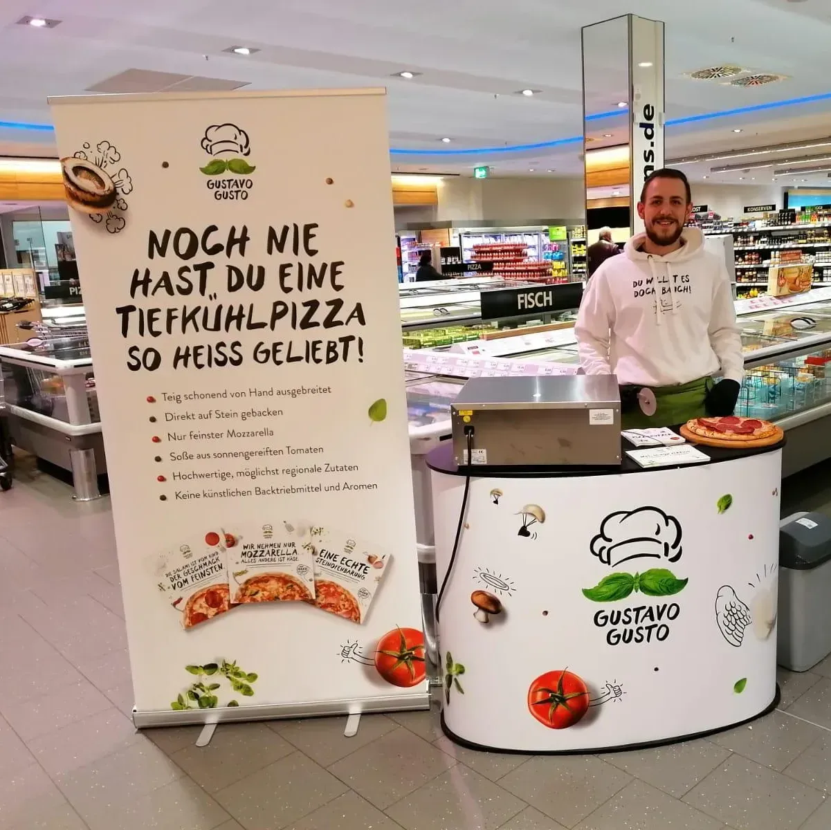 Gustavo Gusto – dahinter verbergen sich die Revoluzzer der Tiefkühlpizza, die mit Geschmack, Qualität und obendrauf einem Sonderformat in die Tiefkühltruhen des Handels vorgedrungen sind und dort für traumhafte Abverkäufe sorgen. Auch wir sind ganz hin und veggi und unterstützen GUSTAVO GUSTO ab sofort bei den umfangreichen Verkostungspromotions in ganz Deutschland.